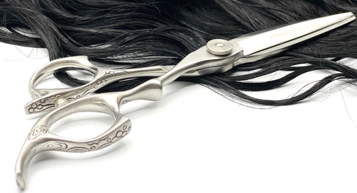 Right Handed 6 inch China Steel Shear. Adjustable black rhinestone screw to tighten or loosen shears for the right tension, to help ensure smooth movement and precise cutting.